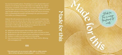 Her first published work—Reclaimed!: A Transformative Yoga And Self-Care Guide For Women's Empowered Healing—aims to tackle healing through a holistic approach. Her latest work Made for This: Words to Thrive By When Life Gets Hard is courage transformed into words. It is designed to capture insights gained in the trenches of healing, to meet people where they are at, and to show them that even though healing can be messy and difficult, it is always worth it. This book is a culmination of her own healing experience and that of the inspiring, courageous women with whom she has had the privilege of walking the path of recovery. Every word has been written with love; in the deepest hope the passages resonate with readers and remind them…You Are Made for This.